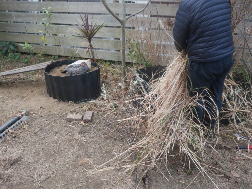 そんな私を見て、夫が言いました。「これ、にわとりの砂浴び場に使うからね」