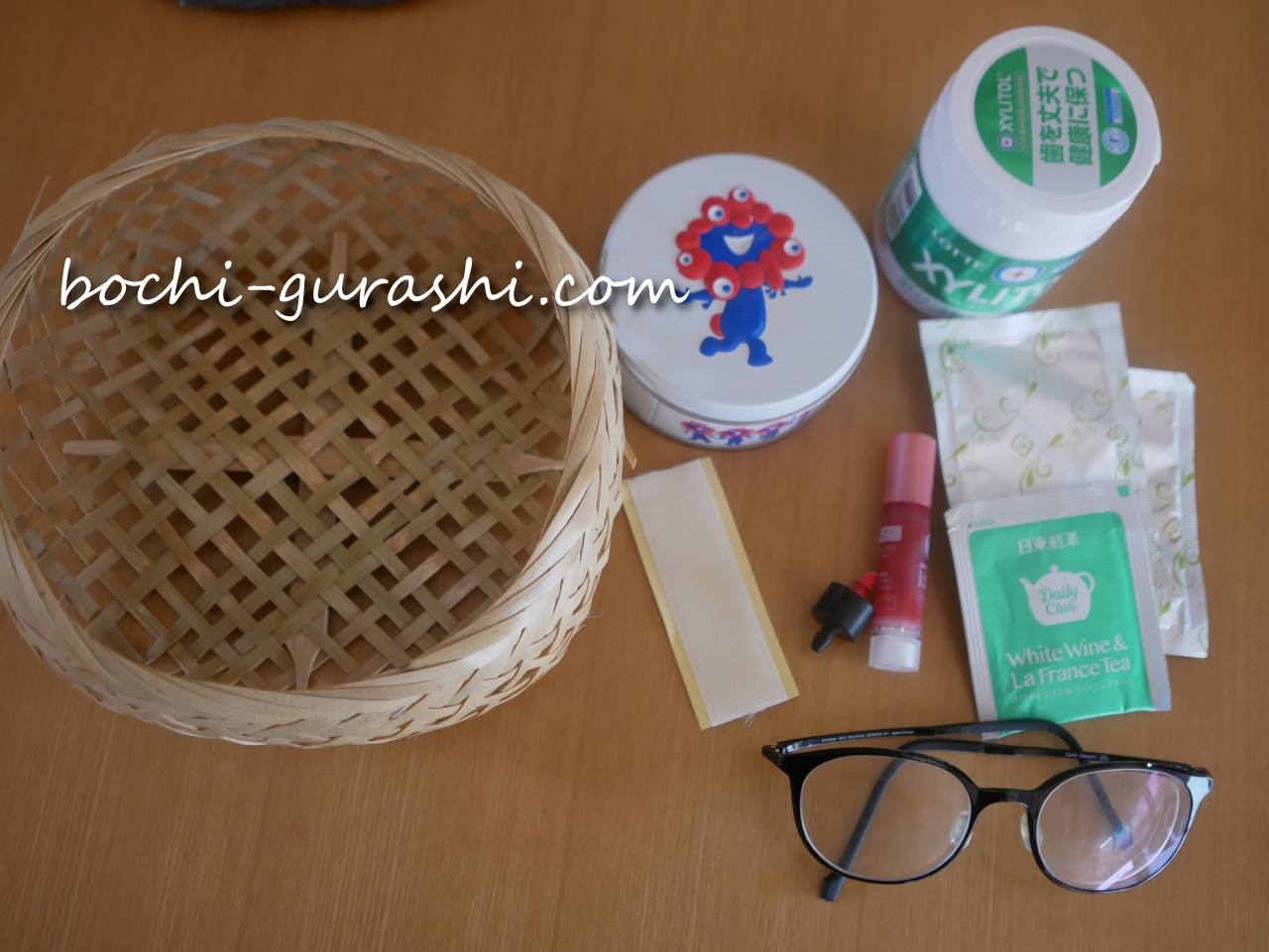 ごちゃごちゃして見える小物類は、ひとつの籠にまとめて放り込む。