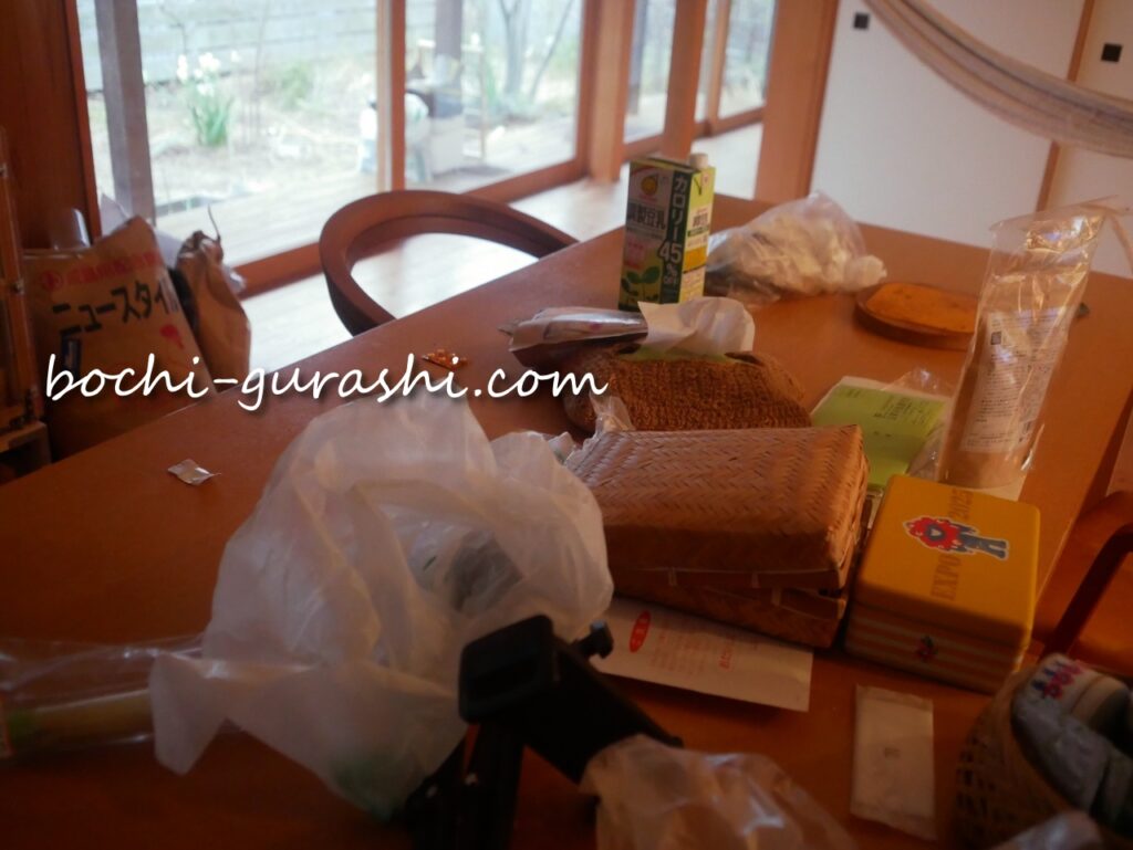 豆乳パック、郵便物、ティッシュペーパー、いつ使ったかもわからない物たち。