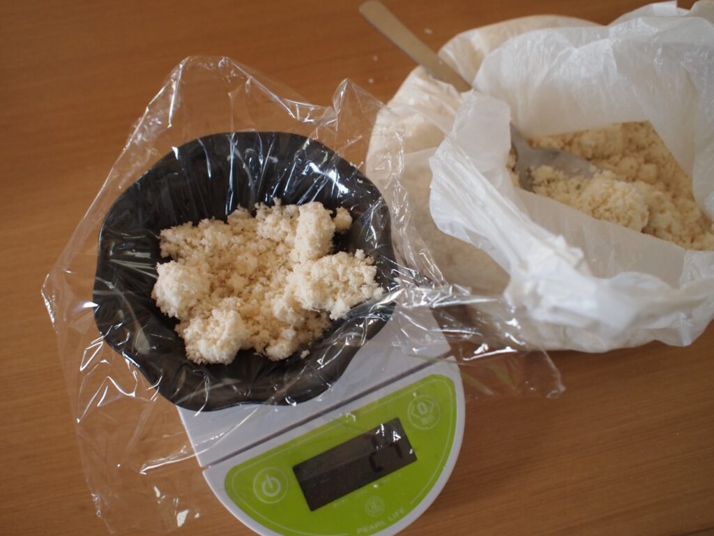 キッチンスケールを出して、だいたい同じ重さになるようにせっせと計量。