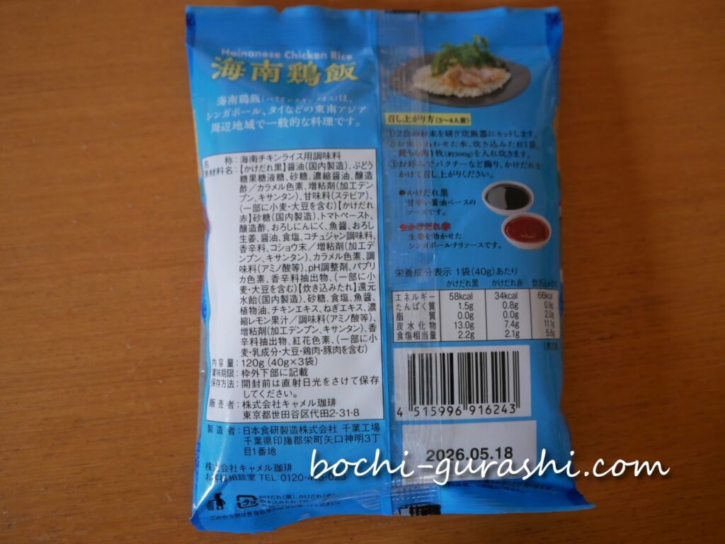 - 商品名: カルディオリジナル 海南鶏飯(チキンライスの素)